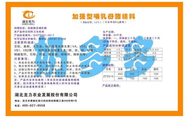 湖北龍力農業(yè)發(fā)展股份有限公司坐落于武漢市黃陂區前川街向陽街群順三里298號附1號。公司成立于2014年6月,公司自成立以來把“創(chuàng)全球最大養(yǎng)豬綜合服務”為企業(yè)愿景。致力于打造教保料品牌”作為公司發(fā)展的明確目標。公司一直致力于豬營養(yǎng)的研究和開發(fā),積極與國內外高校和科研機構合作,推廣養(yǎng)豬技術、動物營養(yǎng)新概念,向世界農牧企業(yè)學習與合作。公司采用國內先進的生產工藝,選擇高精度電子配料秤,高均勻度、無殘留混合機等先進設備....